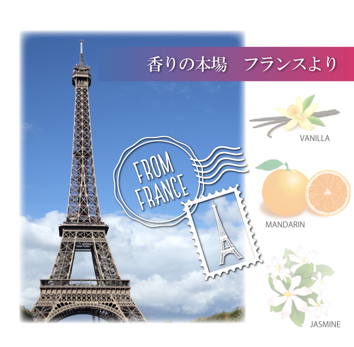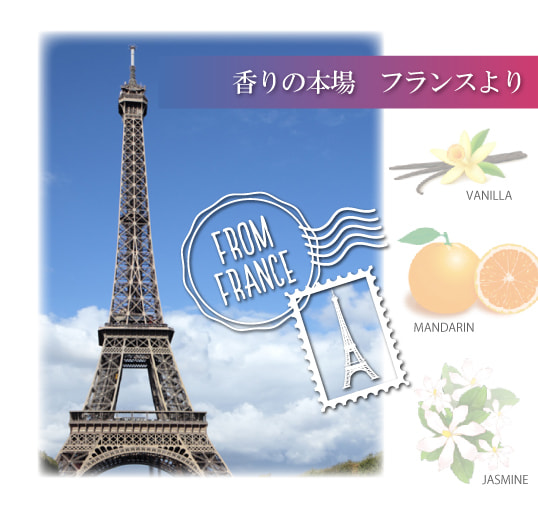 フランスの調香師による特殊な抽出方法で香りを閉じ込めています。中でもバニラの香りを抽出できる調香師は少なく、フランスでも3人しかいません。
